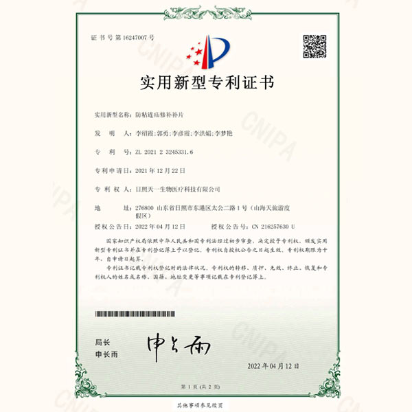 2011年,天一生物與山東省藥學(xué)科學(xué)院建立產(chǎn)學(xué)研合作,聯(lián)合研發(fā)疝修補類器械。該產(chǎn)品研發(fā)后曾在首都醫(yī)科大學(xué)附屬北京朝陽醫(yī)院、首都醫(yī)科大學(xué)附屬北京同仁醫(yī)院進(jìn)行臨床試驗,試驗結(jié)果表明,本公司產(chǎn)品組合形狀更符合臨床使用要求,方便臨床醫(yī)生術(shù)中操作,目前共擁有四大系列產(chǎn)品,臨床使用效果得到了行業(yè)眾多專家的一致好評。